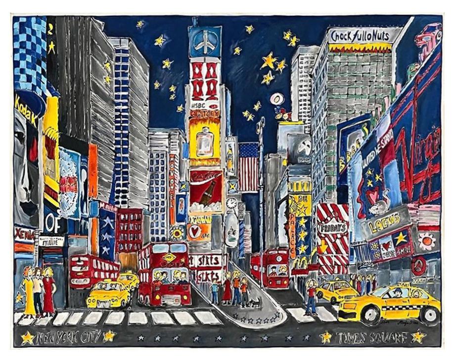 New York Times Square Original auf Leinwand. Perfekt für jede Wand. Eigenwillige Malerei von New York - Hudson River. Im PopArt Style. Tolles Bild in leuchtenden, kräftigen Farben. Acryl, Lack und Kreide. Format: 90 cm x 70 cm